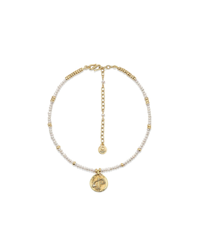A historical symbol of the House, the Astro collection is enriched with a new summer piece that will enhance necklines. This choker-style necklace with its Astro Balance medal, made of freshwater pearls, is available in all astrological signs and complements the existing line. Ideal for layering with other longer necklaces, such as those from the Astro collection.