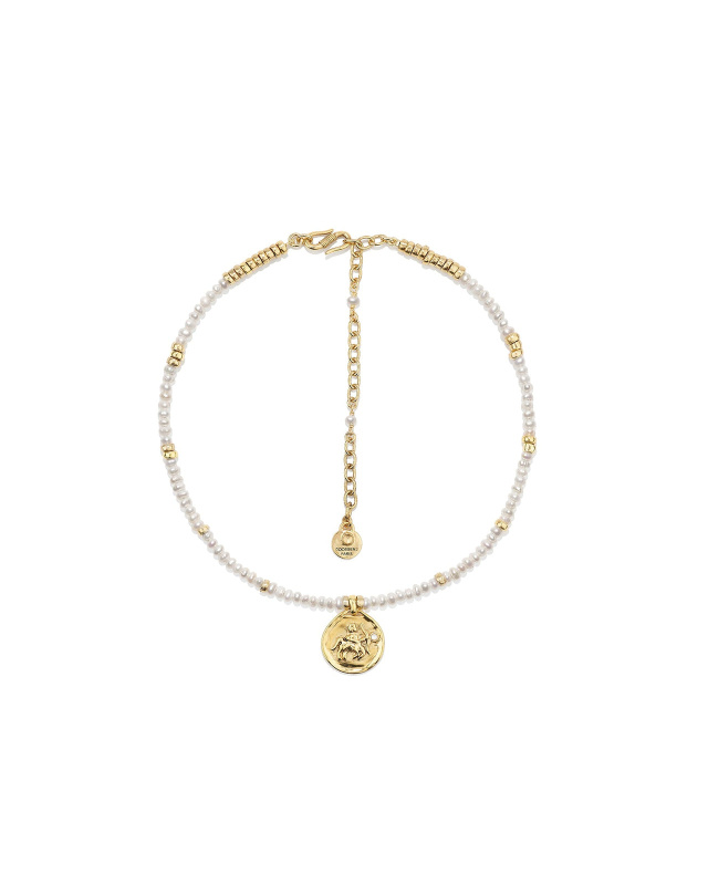 A historical symbol of the Maison, the Astro collection is enriched with a new summer piece that will enhance necklines. This choker necklace with its Astro Sagittarius medallion, made of freshwater pearls, is available in all astrological signs and complements the existing line. Ideal for layering with other longer necklaces, like those from the Astro collection.