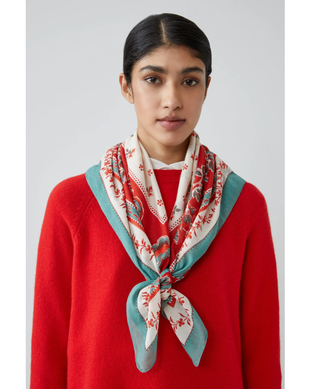 The Roseraie Scarf N°796 combines the retro elegance of the 70s with a touch of modernity. Inspired by old English scarves, it is adorned with colorful patterns that evoke the vintage spirit of British classics. Made from 100% cotton, this scarf offers unparalleled softness and ideal lightness for any season. With its square format of 90 x 90 cm.