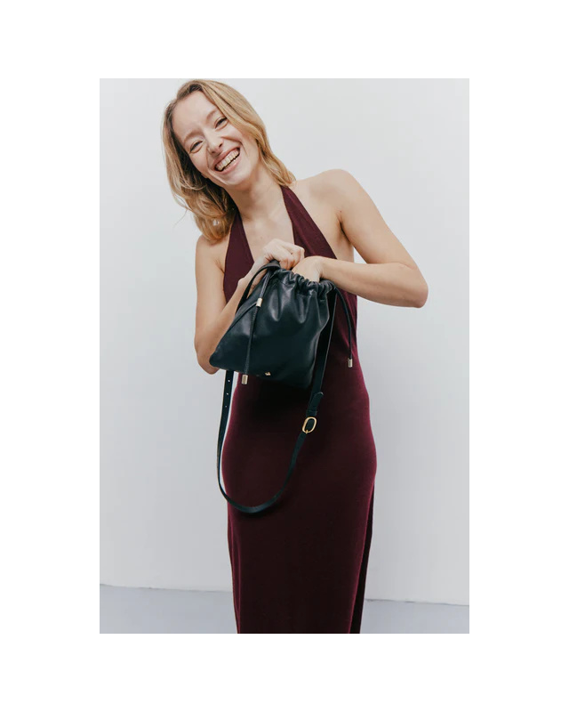 Pochon intérieur en toile de coton noire. Liens coulissants pour garantir une fermeture sécurisée.