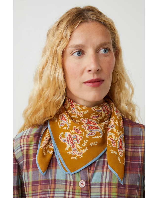 Format 65x65 cm 100 % crêpe de soie Imprimé paisley finement détaillé Format carré, idéal à nouer autour du cou ou dans les cheveux