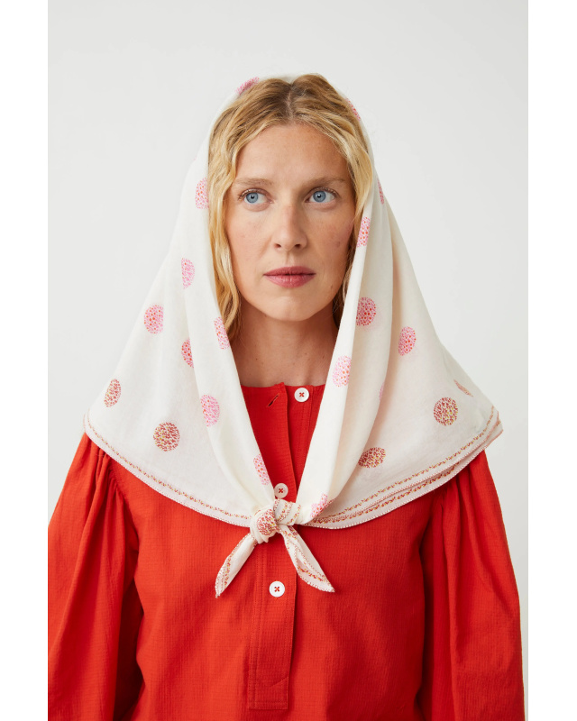 Le foulard Pearl N°820 joue avec la douceur et la légèreté du coton pour créer un motif délicat.