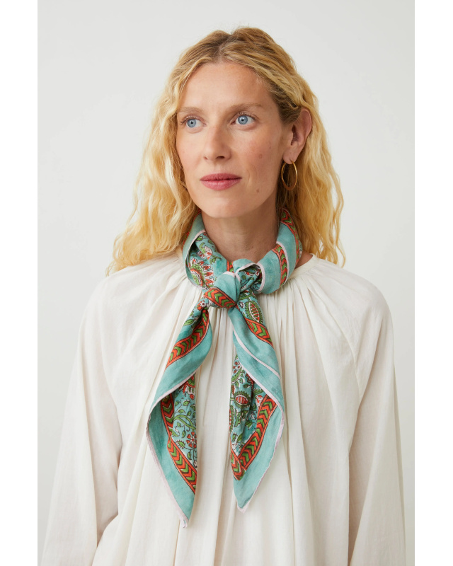 Le foulard Agra N°823 révèle toute la délicatesse et la légèreté du coton naturel à travers un imprimé fleuri réalisé